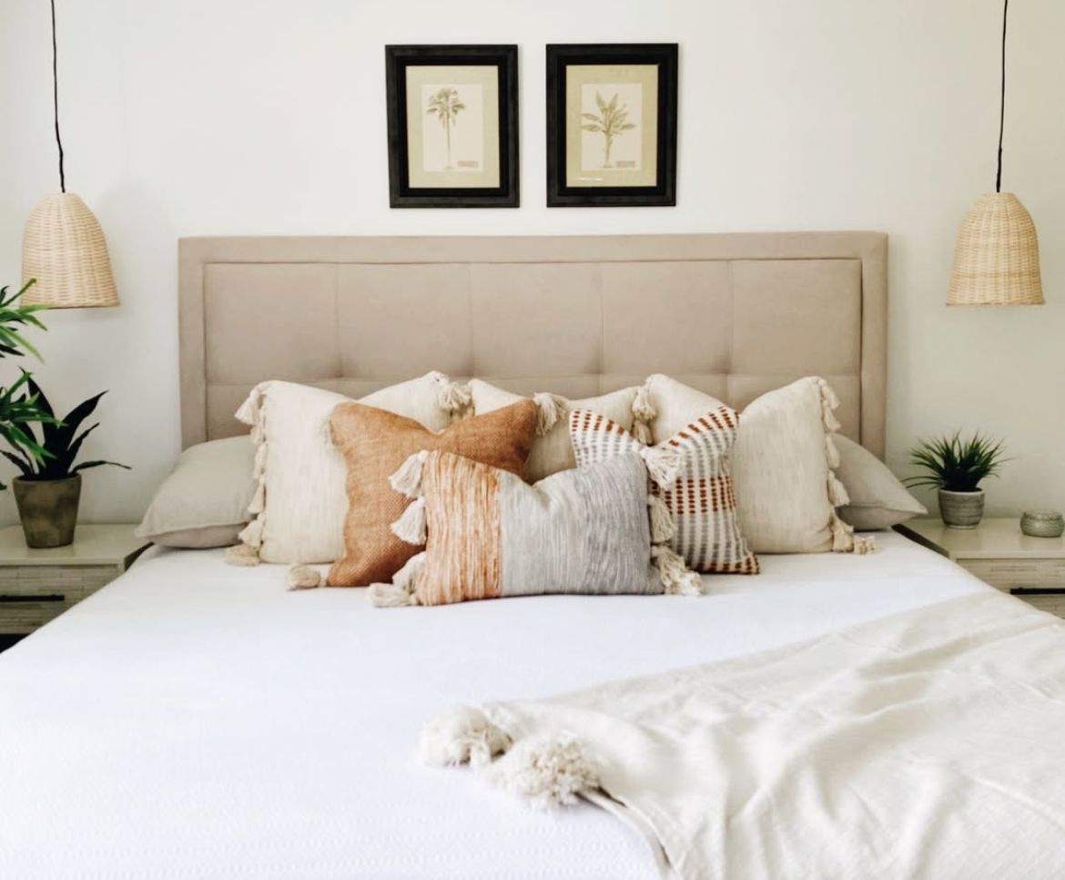 Designer handloom woven cushion cover with chunky tassels 35x55 cm